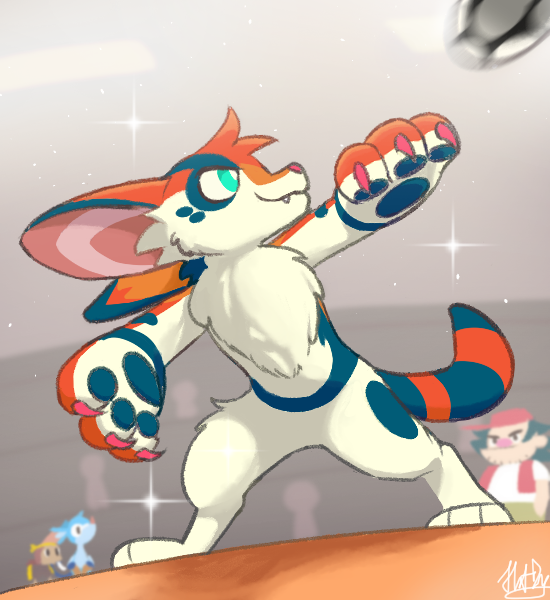 Bildit might be cute, but have you seen how cool Goldie is from The Rutile All-stars in #beastieball? It literally slapped the ball out of existence in the trailer😂 If you haven't take a look at Beastieball, what on earth are you doing? #furryartwork#furryart