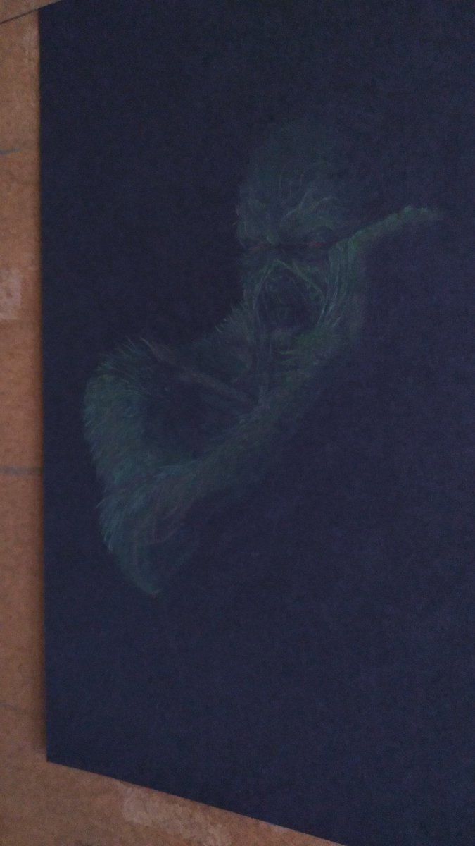 Still trying to get a nice photo/vid of my #SwampThing #workinprogress #colorpencildrawing as it is so far ☠ #ArtistOnTwitter