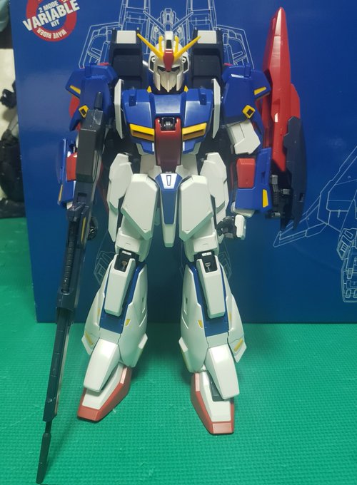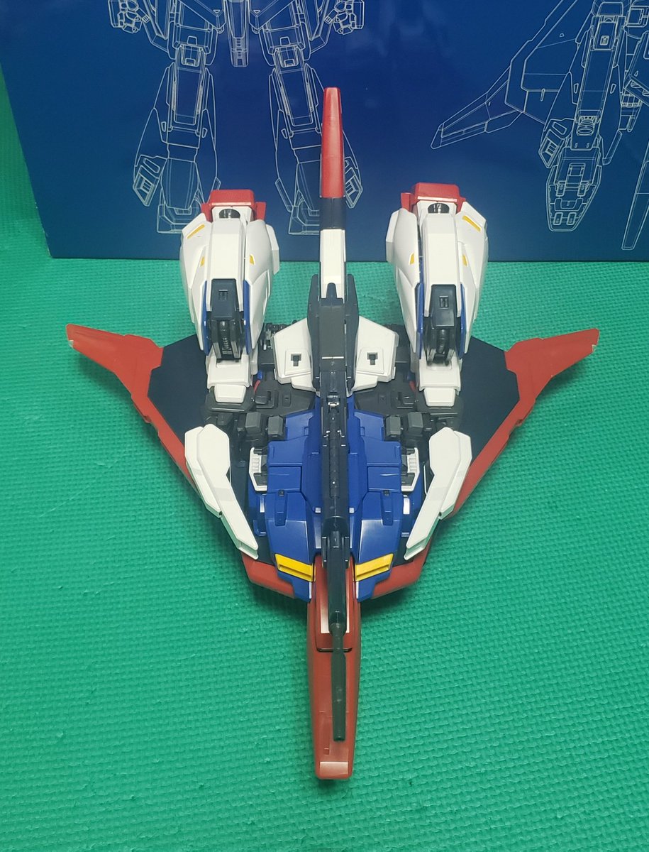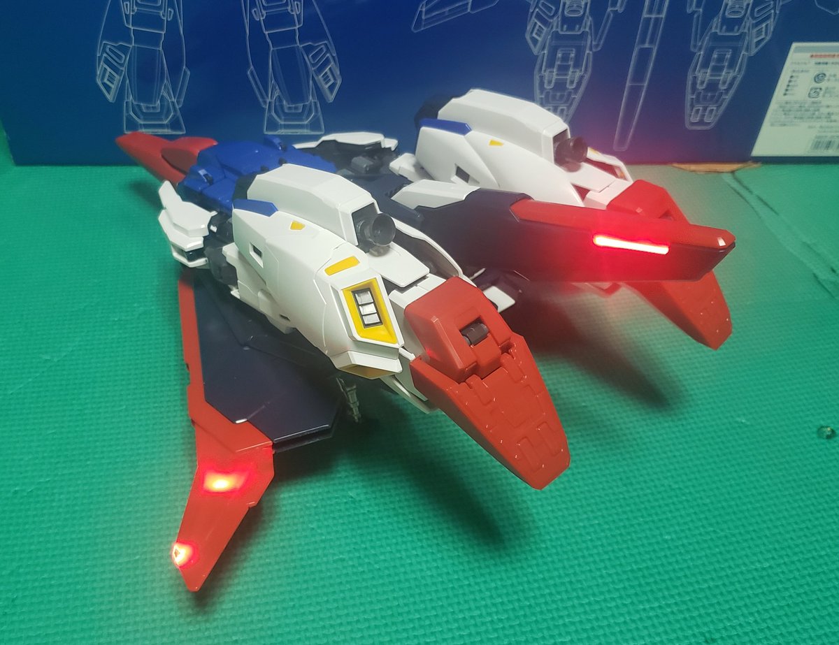 #ガンプラの画像貼るとRTされると聞いて #Ζガンダム 「PG」MS―006 Ζガンダム完成! 変形時、リアルの戦闘機みたいに、はしッこの所とか光る‼️銅線とか金具を使うから、組立ダルかった…。(´Д`)💦2000年当初の物なのでデザインだとか、組立構造は単純。 以外と気軽に作れたかなと思います。(1/2)