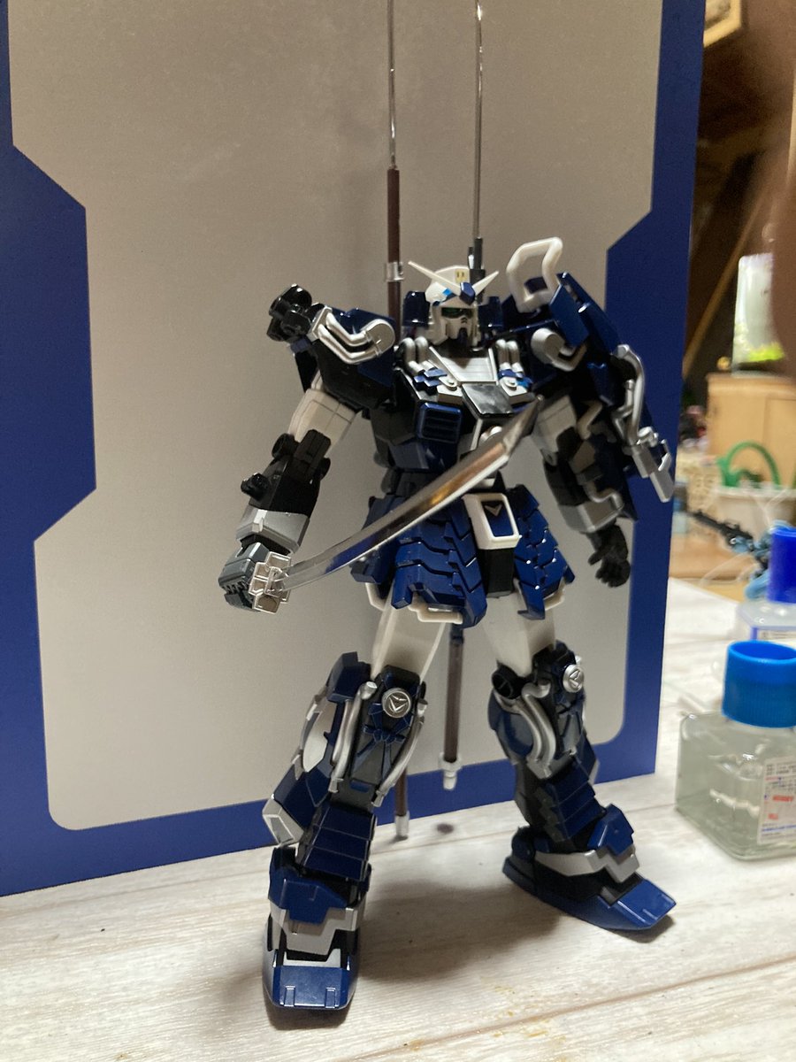 4 33 真武者ガンダム! 部分塗装で完成! いろいろつけてないですが かっこいい!! 青銀もいいなーーー #ガンプラ #ガンダム 22/05/28 23:11