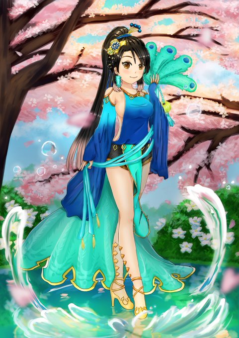 花季雀屏 medibang.com/picture/p02209… #ARTstreet #MediBang #oc #女孩 #花 #2022年8月主題:原創角色 #水 #風 #孔雀