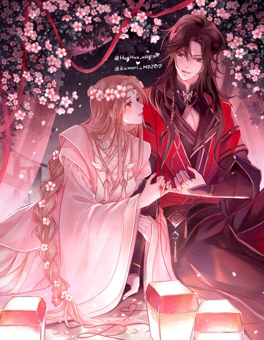 和森森 @kumori_MDZS 一起畫的第3張合圖 😍💘 我們都很愛倚花間的花憐🌸 小花和公主手指拉勾很可愛💖🥰 寶貝的完稿畫的非常的美✨結婚沙龍照(親螢幕!!!!最愛寶了(親寶!💘💘