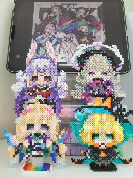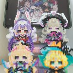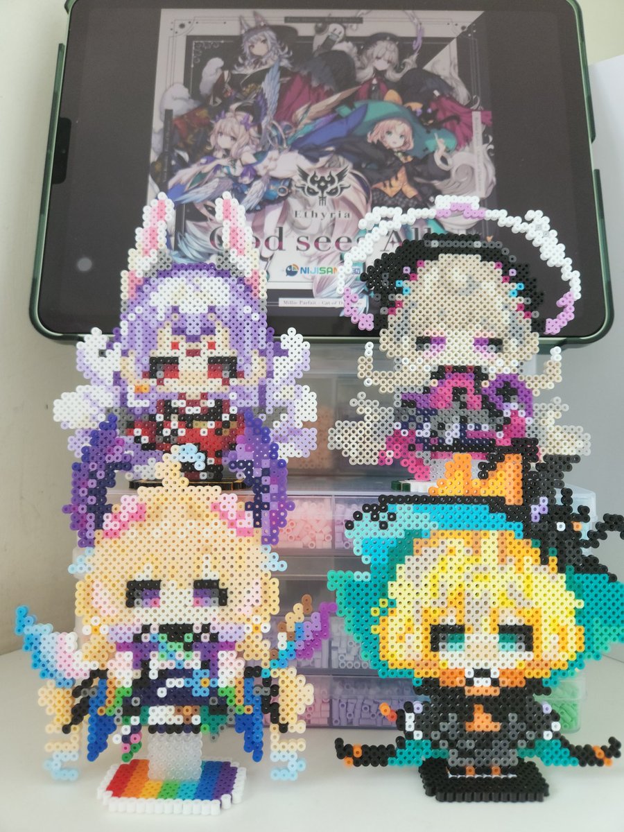 Finally finished all perlerbeads stands of #Ethyria love girls so much Drawings from @Almei1997 a genius sensei, love her and her lovely drawings sorry for don't have enough beads to make the color right :( #Palouette#エナーアート#Reimural#Endoujin#DrawMillie#DrawKosaka