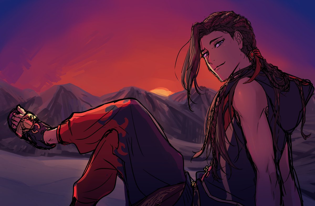 ほぼ雰囲気だけのラクガキ 背景描いてたら唐突に力尽きたわ~ #ツイステファンアート #ジャミル・バイパー