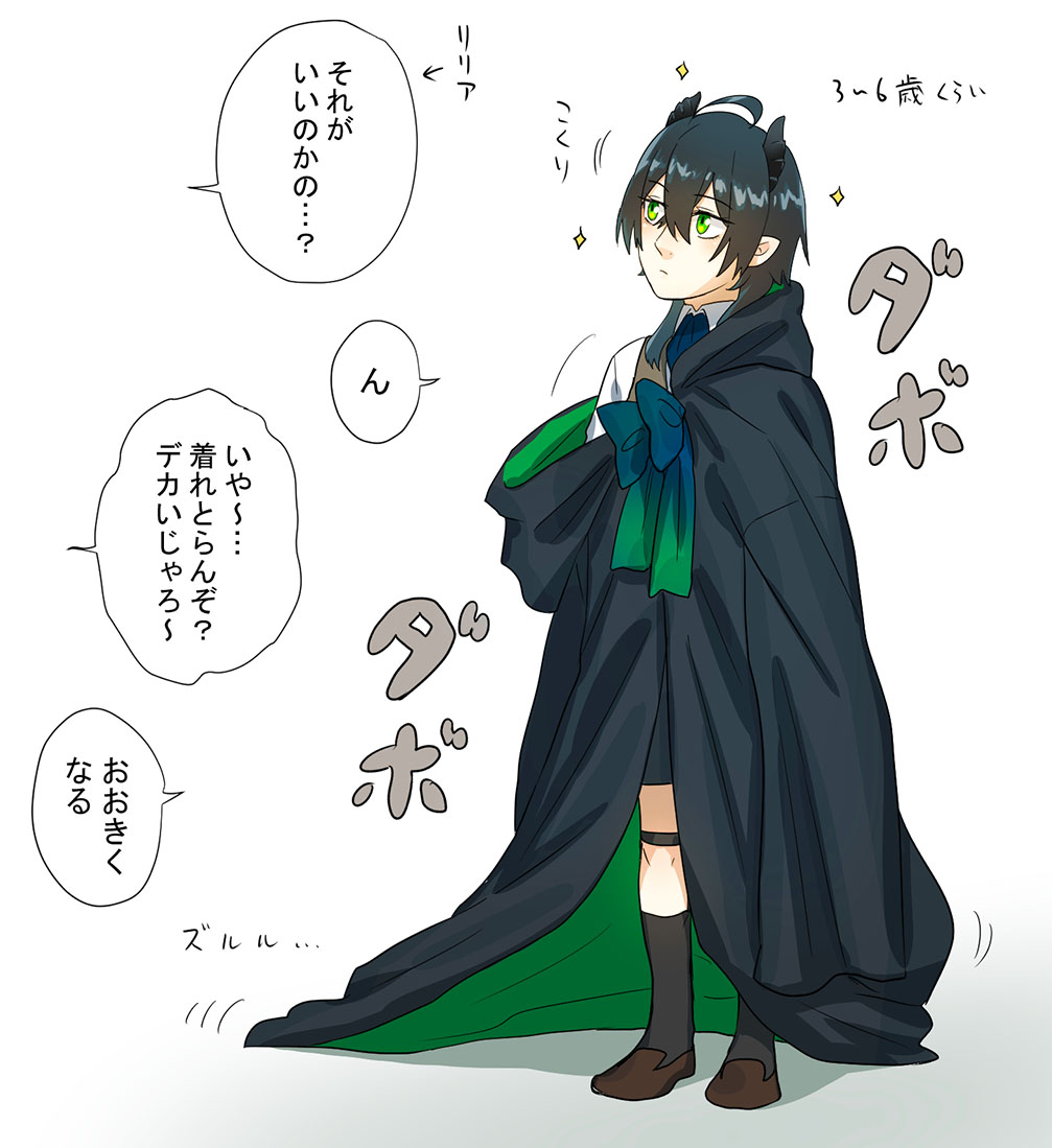 1 8 ちびっ子時の妄想。 2mってデカいっすよね…(角込みの身長かは知らない) #ツイステファンアート #マレウス・ドラコニア 20/11/03 12:17