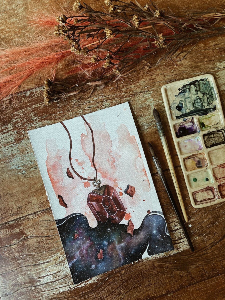 O primeiro tema da lista colaborativa #ListaOculta foi REFLEXO e o resultado da minha pintura foi esse aqui. Usei como referência uma obra da Lora Zombie que eu amo muito. #aquarela #watercolor #inktober2022 #inktober #guache