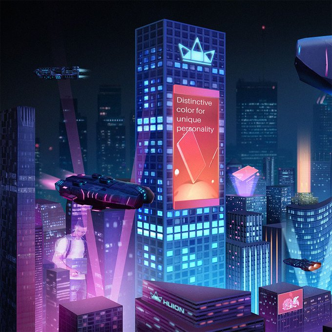 #huioncolor #Huion HS611 in the cyber metropolis. Choose the color that represents you the most! Check out store.huion.com/products/huion… for detailed info. #Huiontablet #digitalpaint #Cyber
