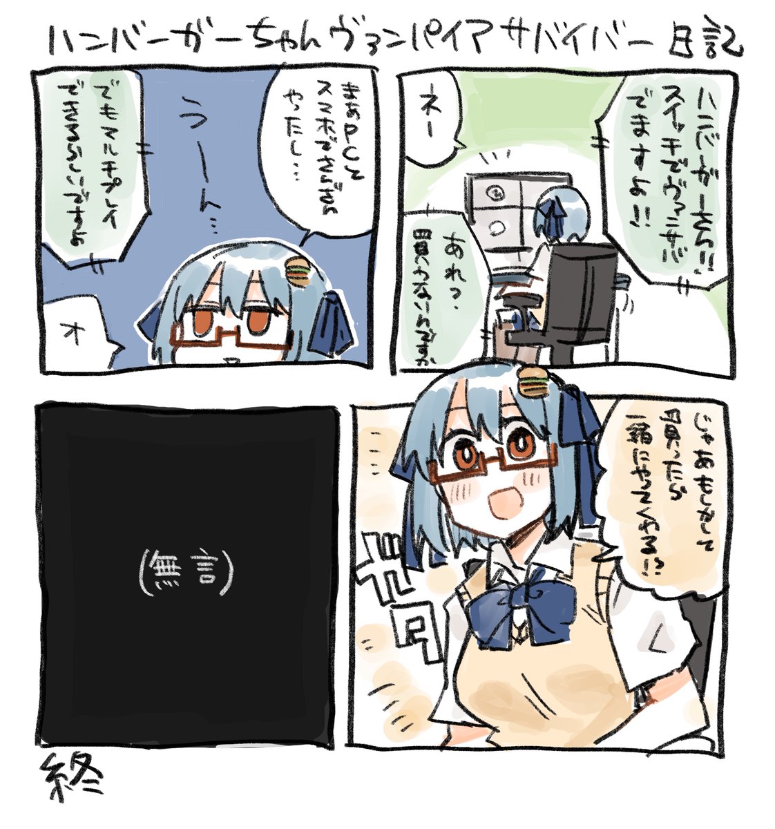 ハンバーガーちゃんメガネメガネ日記出来た。
