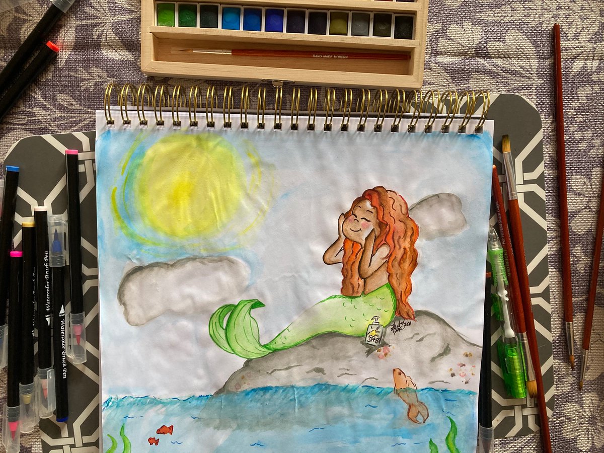 Did a #dtiys from the wonderful Ibontigao on Instagram! I used the wrong paper 😅 #art #mermay #merymay2021 #mermaid #illustration #art #ArtistOnTwitter #disabled