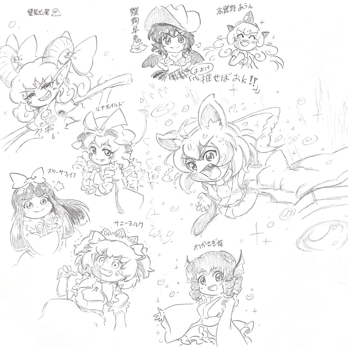描き方シリーズを参考に、幻想万華鏡風で本編未登場の色んなキャラ(+椛)を描いてみたでござる
