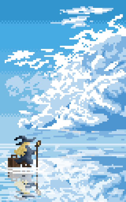 9 40 大空の湖 sky lake (再掲載) #ドット絵 #pixelart 23/04/22 16:33