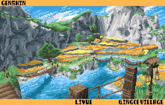 璃月 軽策荘 Liyue Qingce village #ドット絵 #pixelart #原神 #Genshin