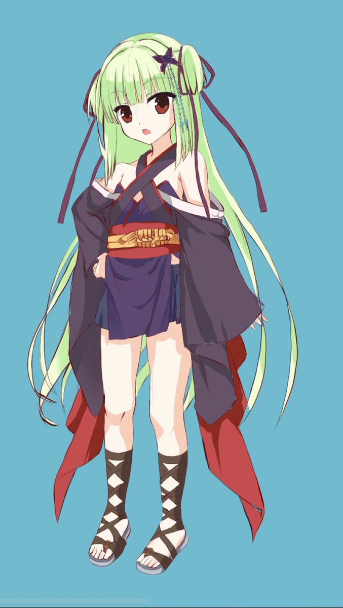 #見た絵師さん強制初投稿の絵と今の絵を比べる 初投稿の子はカマイタチを擬人化した娘です。 鎌にめっちゃ拘ったため、装飾がやけに細かい。 ←初投稿 現在→
