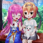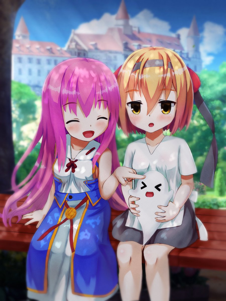 ツキノさん(@Lo500_U511) の子ユーちゃんとウチの子マリアのコラボ絵を描かせて頂きました。だいぶ前にツーショット見たいとの要望をいただいたので挑戦しました。 3人が仲良くしてる様子が伝われば私も嬉しいです😊