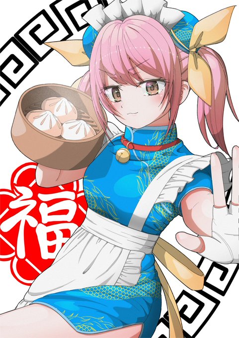 チャイナメイドちゃん完成しました✨ アニメのアイキャッチ風に描いてみました😆🎉 無意識のうちに配色が某猫型ロボットになってしまった… #イラスト好きな人と繋がりたい #絵描きさんと繫がりたい #イラスト #オリジナルキャラクター