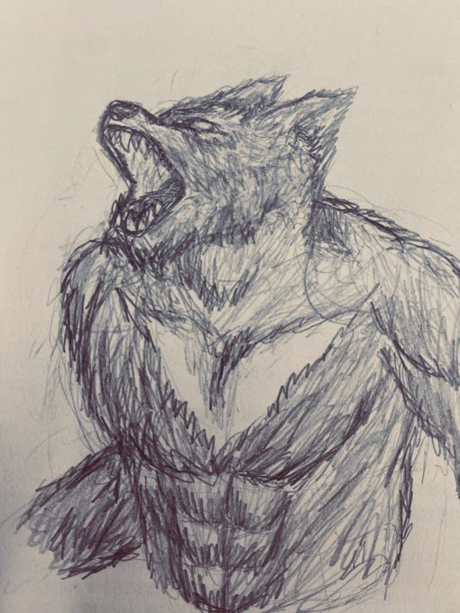 授業中にウェアウルフ描いてる劣等生 #イラスト #オリキャライラスト #クリーチャー
