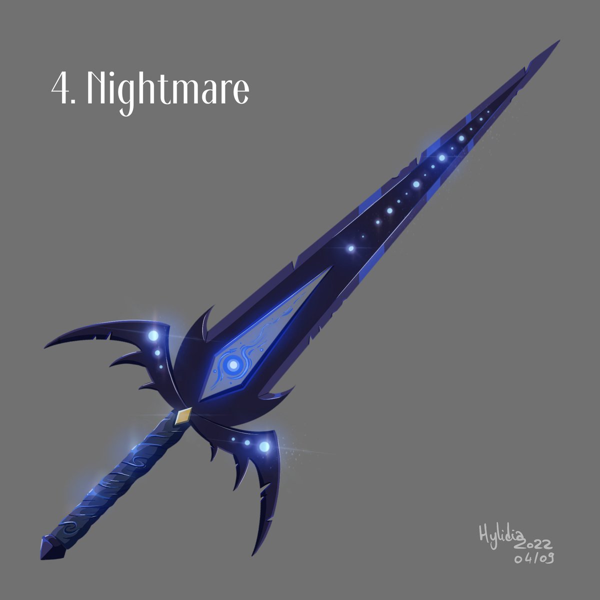 Day 4: Nightmare Made from obsidian trees, this sword has a bad tendency to whisper harsh words to the bearer, driving them crazy and sucking their souls if they're weak minded. Inhabitants of the Nightmare realm likes collecting the captive souls. #swordtember2022 #swordtember