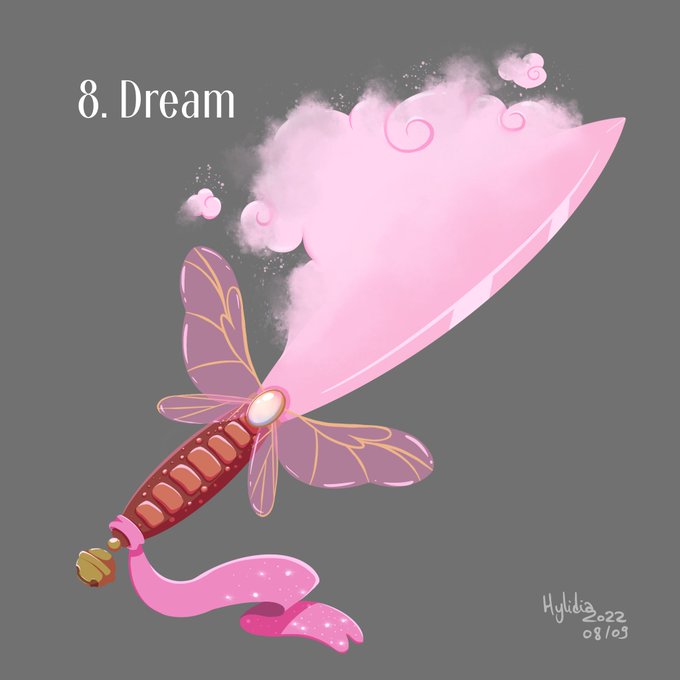 Day 8: Dream Don't be fooled by its harmless appearance, this sword can throw anyone into an illusion so realistic it makes you wonder if the sword itself is not one... The fairies use it to help their fellow comrades hunt a new body to inhabit... #swordtember2022 #swordtember