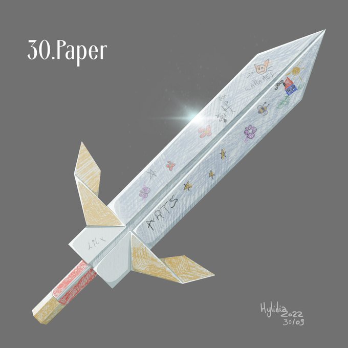 Day 30:Paper A little girl dreamed of becoming a bladesinger like her father! So one day, the dad gifted her a paper sword, telling her that all bladesingers decorate their own weapons. The girl then hastens to decorate her first sword with drawings! #swordtember2022 #swordtember