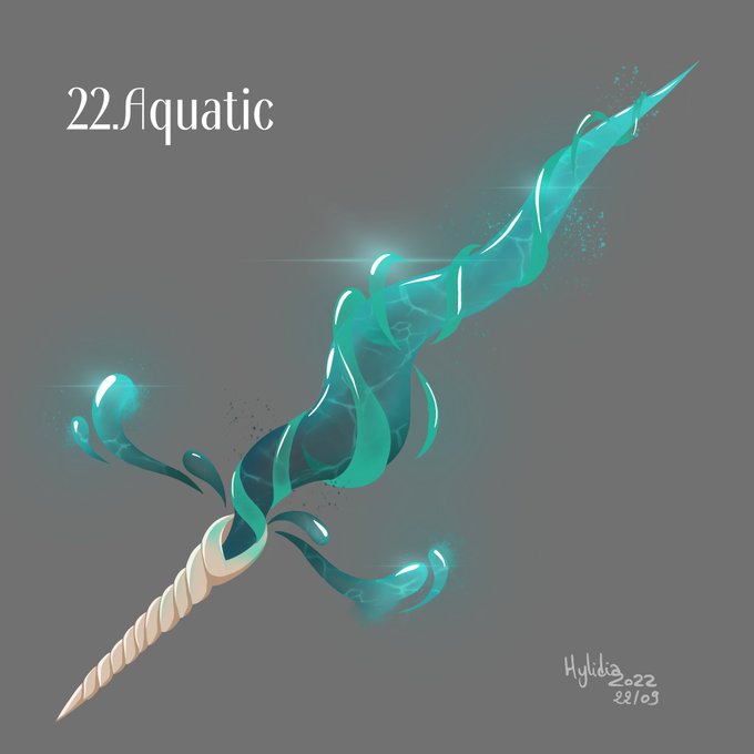 Day 22: Aquatic A legend says that this shell-like sword was a gift from the goddess Nimy for coming to see her. Another legend says that it was a water elemental that got stuck in this shell while trying to hide from someone... #swordtember #swordtember2022