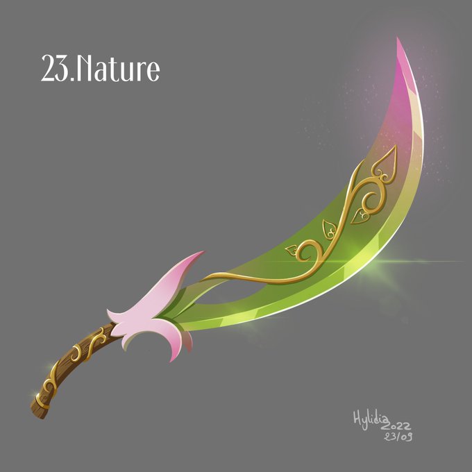 Day 23: Nature As elegant as it is sharp, this holy sword was crafted by some of the finest elven craftsmen. It is used when the elves must cut a branch from a tree of life, signifying the final death of a member of an elven family. #swordtember2022 #swordtember