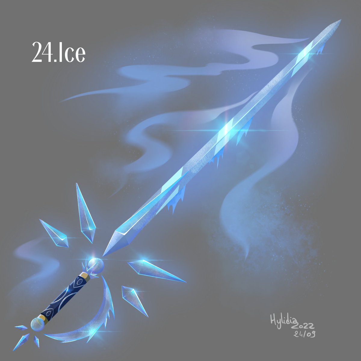 EN: Day 24: Ice Like the Galborn family from which it comes, this fine sword is so icy that touching it gives frostbite to all those who are'nt prepared. It's said that even fire can't warm the blade, as cold as the heart of the elven family... #swordtember2022 #swordtember