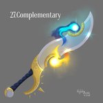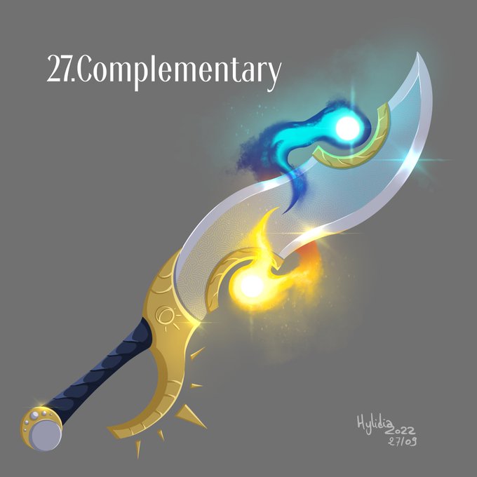Day 27: Complementary The two facets of day and night united. This sword is sometimes used by Cyclops to accompany people who have called on them. The color of magic on the sword balances based on the position of the sun and the moon in the sky. #swordtember2022 #swordtember