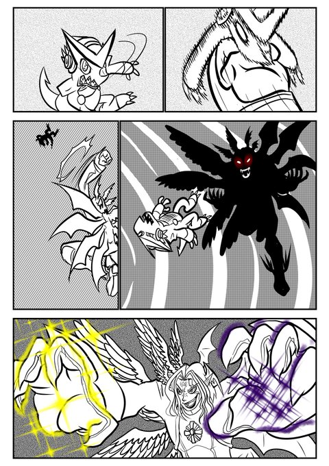 Day 16 of @digimonth #inktober #shoutmon #rizegreymon #wargreymon #Lucemon #digimonthdnc #digimonfanart #Digimon (Confession, Risegreymon's arms and wings were a mix of references I took from the cards, they were a major pain to draw otherwise)