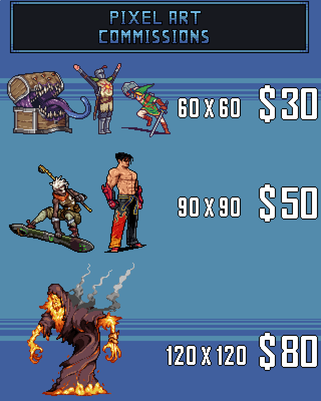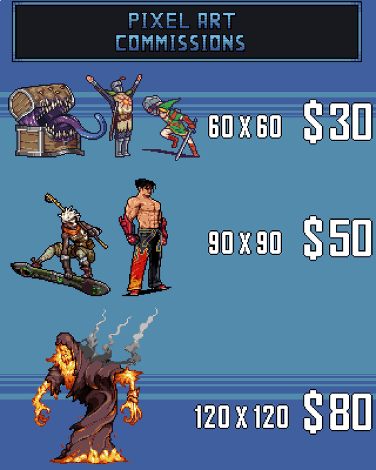 My commissions are open! if you are interested send me a dm! payments will be made through paypal. If you can help me with an RT I will be very happy!! #pixelart #ドット絵 #commissionsopen