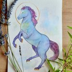 Nouvelle aquarelle 🐎 Une commission pour @Calinoob , merci pour son soutien ! Les chevaux, c'est toujours un challenge, mais je suis contente du résultat 💙 Ca vous plairait une série comme ça ? Un animal/couleur en particulier ? #aquarelle #watercolor