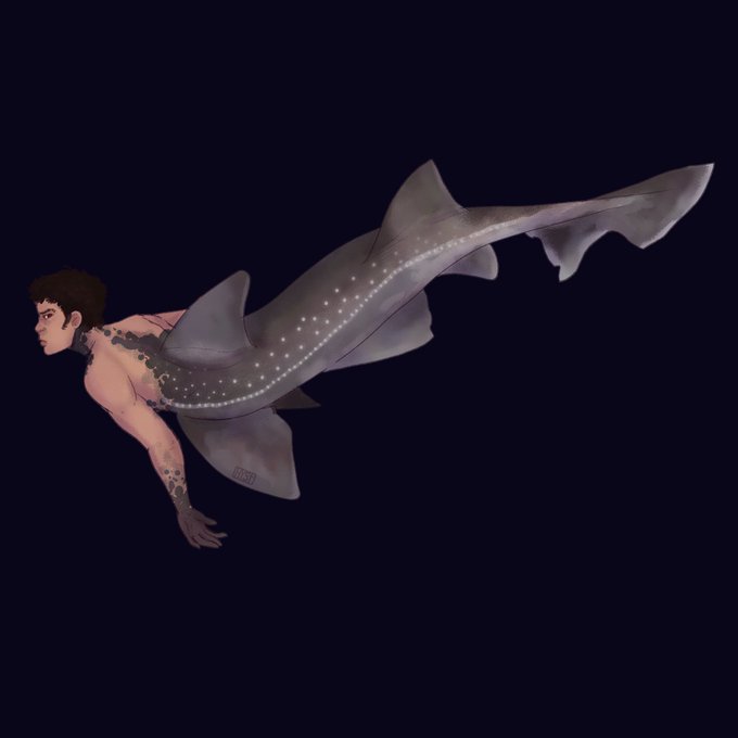 Mermay Day 23: Starry smooth-hound Jonathan Freeman (he/him) for me (my own present) #mermay2021 #mermay