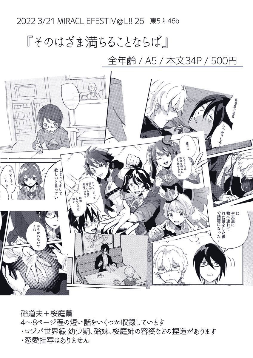 【3/21 ミラフェス26】はざらば新刊サンプルです!! 4〜8ページ程の話がいくつか収録されている本です 恋愛描写はありません 全年齢/A5/本文34P/500円 MIRACLE FESTIV@L!! 東5ホール と46b 後日BOOTHにて通販を行う予定です。(サンプルの続きはツリー) pixivサンプル↓ pixiv.net/artworks/96916…