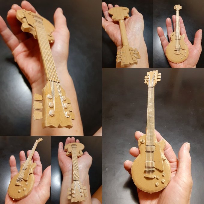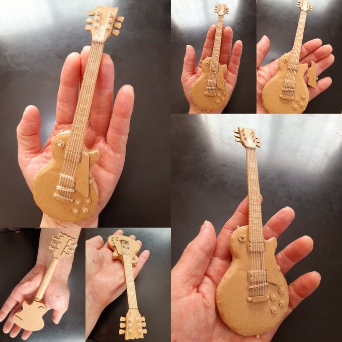 1 6 段ボールで作るミニチュアギター🎸 レスポールです♪ピックガードは脱着式!ピックアップカバーのあるタイプです(^-^)/ #段ボールアート #段ボールギター #段ボールクラフト #ペーパークラフト #レスポール #ギブソン #Gibson #ジョンサイクス #バンド #ハードロック 22/10/12 01:00