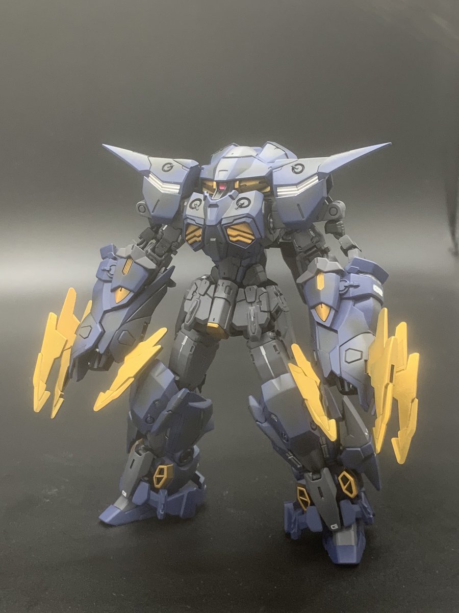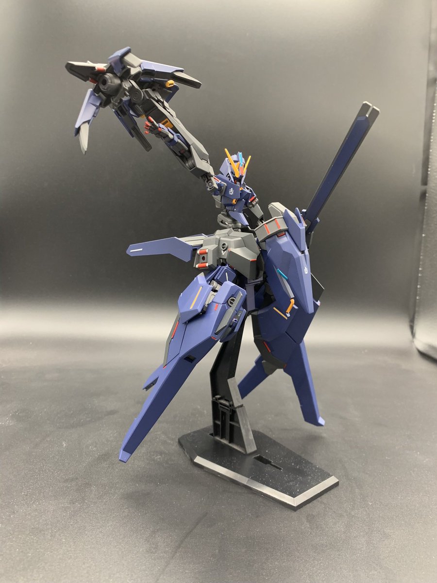 ガンダムルブリスを量産型風に改造してみました。 背中は30MMのパーメインで構成、背部のブースターユニットに4機のビットを搭載(2機は台座の都合で飛ばせてない)してます。 配色はミリタリー風にグリーンとグレーで塗りました リプ欄に追加の写真あります