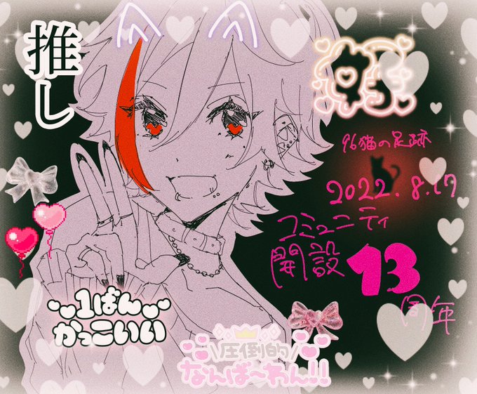 (。≖ˇェˇ≖。)b 【@96__neko 】【@96_neko_sub 】 #96猫絵 コミュニティ開設13周年おめでとう㊗️ 🐈⬛🐾🐾🐾