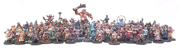 My love letter to @VaevictisMinis. A rough majority of their character sculpts, in one image. Thanks, @JohnReillis and @mathildecalon for all of the wonderful sculpts you do. #dndart #ttrpg #minipainting #dndminiatures #Wargaming