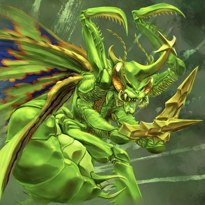 #あなたのみどり色の作品を見せてください メガロカマキラスバトラ …ゴジラの対戦相手は意外に昆虫怪獣多いですね。