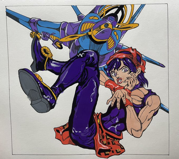 ナランチャ&エアロ・スミス アクリル絵の具で塗りました。 #ジョジョの奇妙な冒険 #ジョジョ #イラスト #イラスト好きな人と繋がりたい #絵描きさんと繫がりたい