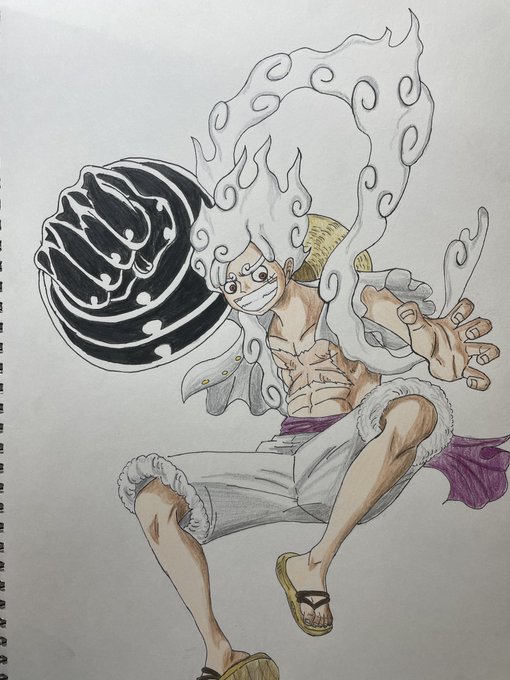 ギア5 ルフィ描いてみた! 早くアニメで活躍を見たい👊 #ワンピース #onepiece #イラスト #イラスト好きさんと繋がりたい #絵描きさんと繋がりたい