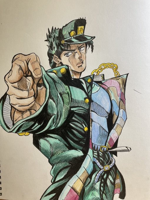 4 35 空条承太郎 描いてみた👊 画面右 ボールペンがシュッてなってしまった… #ジョジョの奇妙な冒険 #jjba #イラスト #色鉛筆 22/09/23 22:24