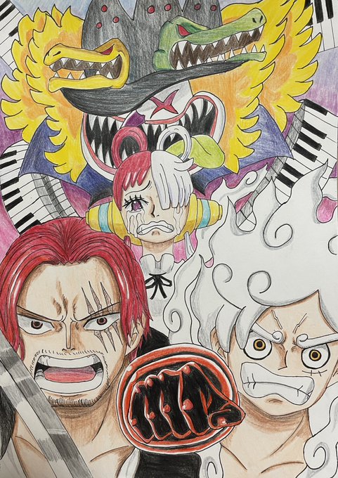ルフィ&シャンクスVSトットムジカ #ワンピース #ONEPIECE #OP_FILMRED #ウタ #FILMRED文化祭 #アート部門 #イラスト