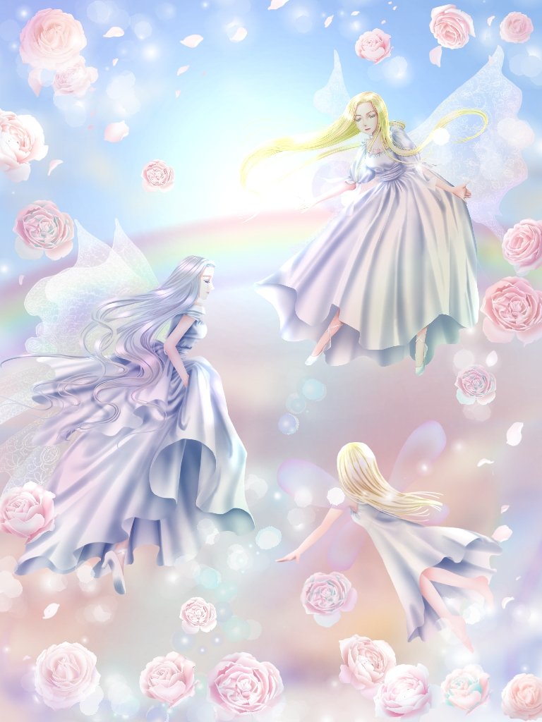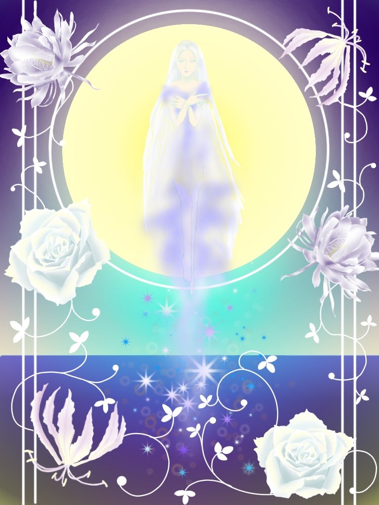 15 53 デュカスの「ラ・ペリ」というバレエ曲がありますがそのラストでペリが不老不死の花(蓮の花)を抱えて天に帰るシーンを描いてみました。 21/08/02 13:44