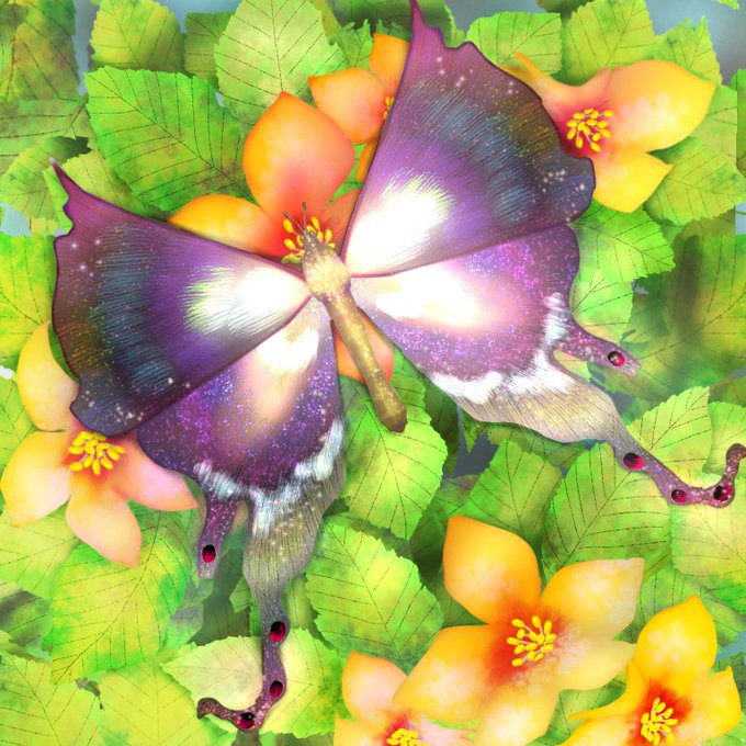 前回トンボをさらっと描いたら昆虫が描きたくなりまして、どうせなら夢の昆虫が描きたいなぁと架空の種のチョウを描きました🦋