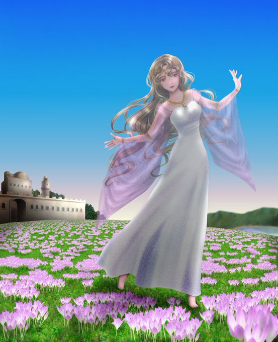 めっちゃ過去絵ですが。 英国のオペラ「アルバート・へリング」で「5月の女王(メイ・クイーン)」を選ぶ春の祭りをする話がありまして。そのメイ・クイーンのイメージで描いたのですが遅筆で5月に描き終わらなかったという思い出が…(´Д`|||)