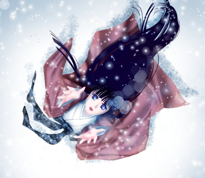 19 83 一年前に描いた絵です 姫神の曲で「青らむ雪のうつろの中へ」というのがあり、そのイメージで描きました。 見る人で物語を想像してもらえればいいのですが私は「最愛の恋人と引き離され嫁がされた少女が病を患い余命少ない中恋人に会いたいあまり外に飛び出し手を伸ばす」という話を想像しました 22/01/10 10:39