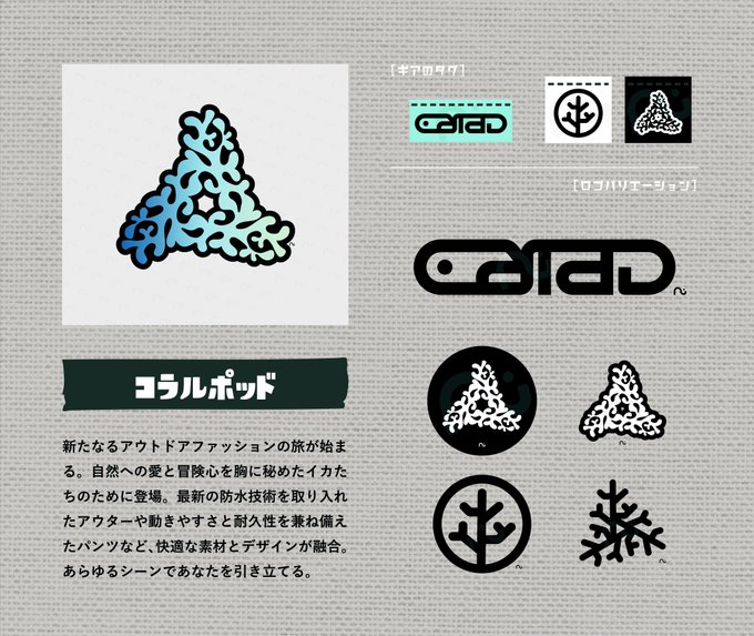 30 389 コラルポッド 新たなるアウトドアファッションの旅が始まる。自然への愛と冒険心を胸に秘めたイカたちのために登場。最新の防水技術を取り入れたアウターや動きやすさと耐久性を兼ね備えたパンツなど、快適な素材とデザインが融合。あらゆるシーンであなたを引き立てる ※スプラ創作ロゴ🦑 23/05/28 12:51