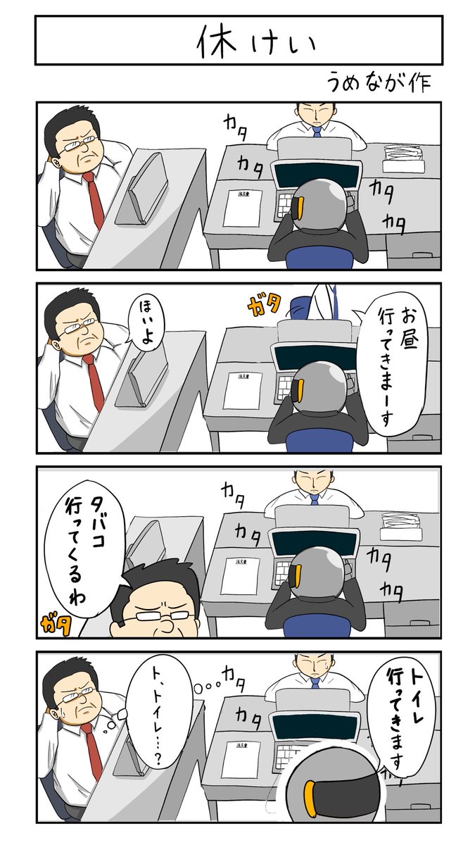 〜働け!ロボリーマン〜 第26話『休けい』 #ロボリーマン #4コマ #4コマ漫画 #サラリーマン #漫画 #漫画好きな人と繋がりたい #社会人 #営業