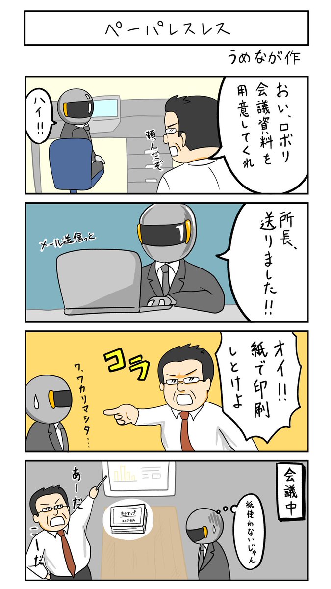 3 49 〜働け!ロボリーマン〜 第27話『ペーパーレスレス』 #ロボリーマン #4コマ #4コマ漫画 #サラリーマン #漫画 #漫画好きな人と繋がりたい #社会人 #社畜 21/05/13 22:13