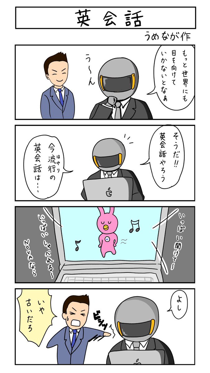 100日後に転職するダメロボリーマン 第41日 『英会話』 #4コマ漫画 #4コママンガ #漫画 #サラリーマン戦士 #転職 #社会人あるある #英会話 #脱サラ #NOVA #ノバウサギ
