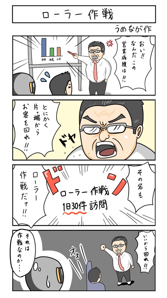 5 61 100日後に転職するダメロボリーマン 第42日 『ローラー作戦』 #4コマ漫画 #漫画 #サラリーマン戦士 #転職 #社会人あるある #社畜 #ブラック企業 #今週もお疲れ 21/07/16 18:57